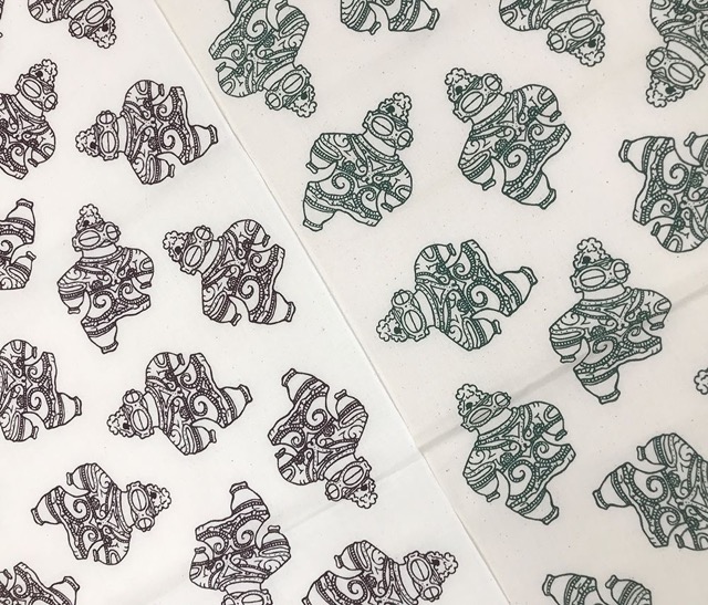 - 縄文(土器や土偶)や妖怪をオリジナルのイラストでデザインし、職人さんに一枚一枚染めてもらった手捺染(てなっせん)手ぬぐいやお手頃価格のプリント手ぬぐい、シルクスクリーンプリントのヘビロテしてもへこたれない丈夫なTシャツなど作っています。