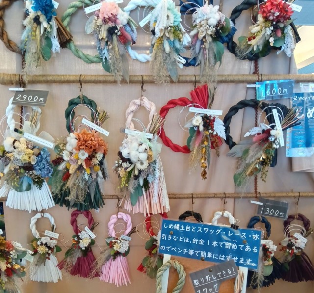 しめ飾りメインの花雑貨、アクセサリー雑貨