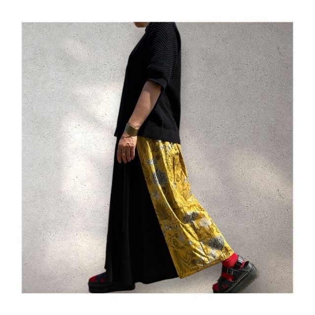 国産素材を使用し、年齢や体型を気にせず幅広い層の方に選んで頂けるように製作した重ね着風のオリジナルゴムスカートをお持ちします