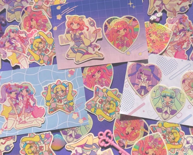 - あの時のトキメキを。をコンセプトにどこか懐かしいイラストを描いている作家です。そのコンセプトにちなんだアクリルグッズや、イラスト本、ステッカーなどご用意しています。
