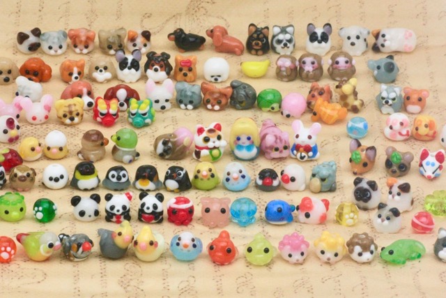 - 動物がモチーフの小さなガラスビーズを手作りしております。お好きなビーズをその場でストラップなどに加工するサービスあり。羊毛フェルトの動物マスコットも少しあり。