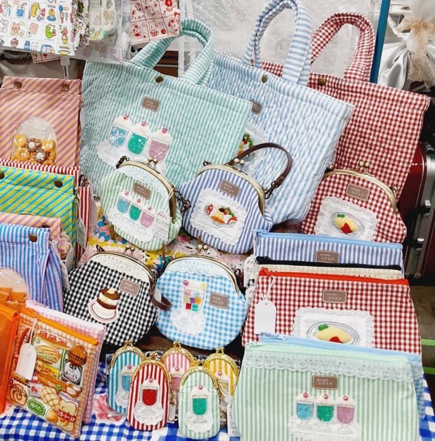個性的な素材や柄の生地を使用したポーチやバッグ
