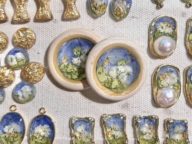 レジンとドライフラワーを使った絵画モチーフアクセサ