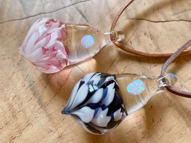 - 耐熱ガラスをバーナーで溶かし、アクセサリーを中心に制作しています。ガラスの透明感や光で変わる様々な表情をお楽しみいただけたら嬉しいです。青森から初出展!りんごのガラスアクセサリーもぜひご覧ください!