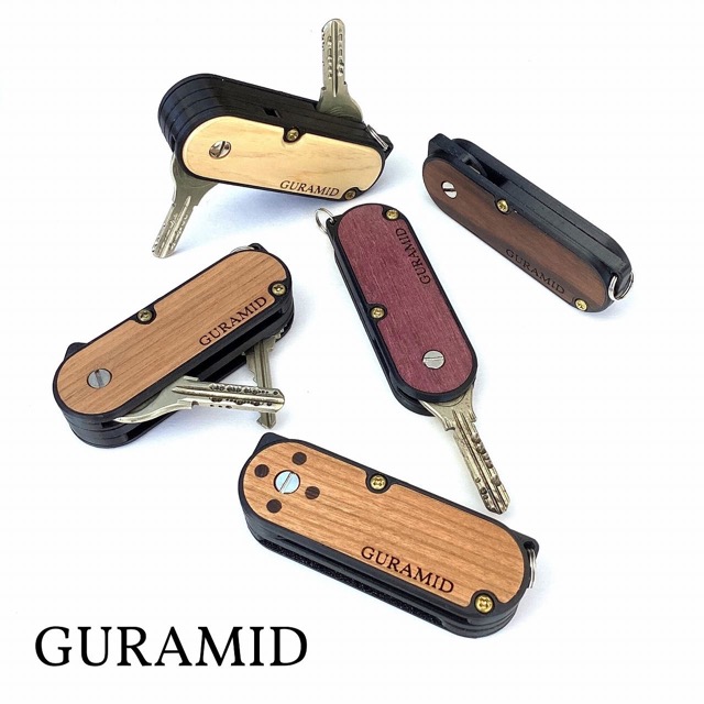 - キーケース専門のグーラミッドです。カチカチと小気味いい感触で鍵を取り出せます。鍵は簡単取付でき、当日はその場で取付も行います。外装に様々な木材をセットしており、色合いや木目がそれぞれの個性となります。前回に続きミニブースでの出店になります。 ぜひお立ち寄りください。