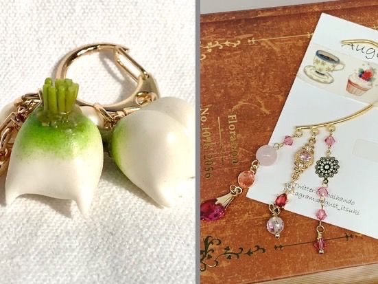 - 〇August 私が思う綺麗を天然石やレジンを使って表現しています。色々なコンセプトを元にした1点ものが中心のアクセサリーを作っています。 ○shiroiro 粘土やレジンを使用した作品を中心に作成しています。フェイクスイーツなどのリアルな食べ物を作っています。 たくさん用意してお待ちしております!