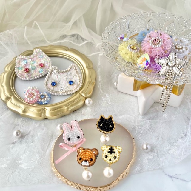 - ビーズ刺繍のキラキラ動物モチーフアクセサリーのfioris、 ひとつひとつ手で糸を巻いて作る温かみのあるボンボンアクセサリーkazarina、 天然石と陶器で作る金継ぎアクセサリーBloem hoekjya の3人の作家で出店します それぞれの個性が光るブースにぜひお立ち寄りくださいね