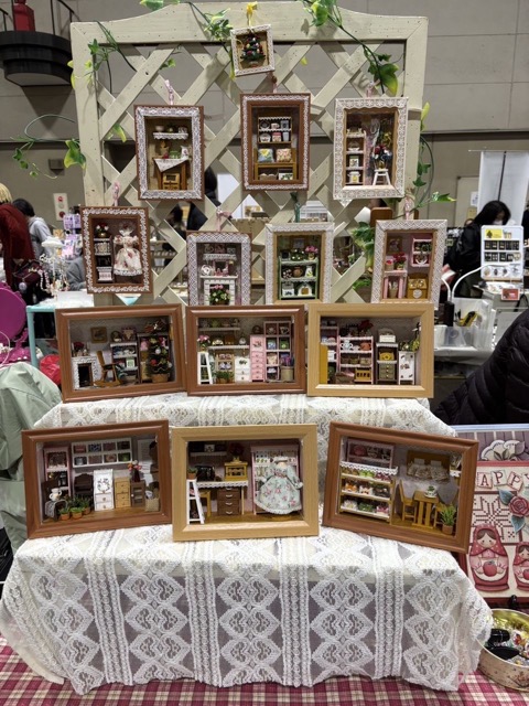- 作家3人でそれぞれでインテリア小物やアクセサリーなどを作っています。中でも一番人気はミニチュアで飾った小さなお部屋です。中にある全てのものが一からこだわって作った一点ものばかり。見てるだけでも楽しくなります。是非一度ご覧ください
