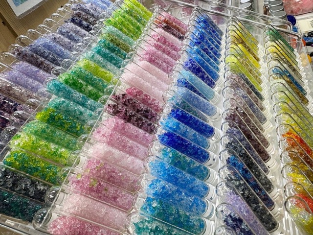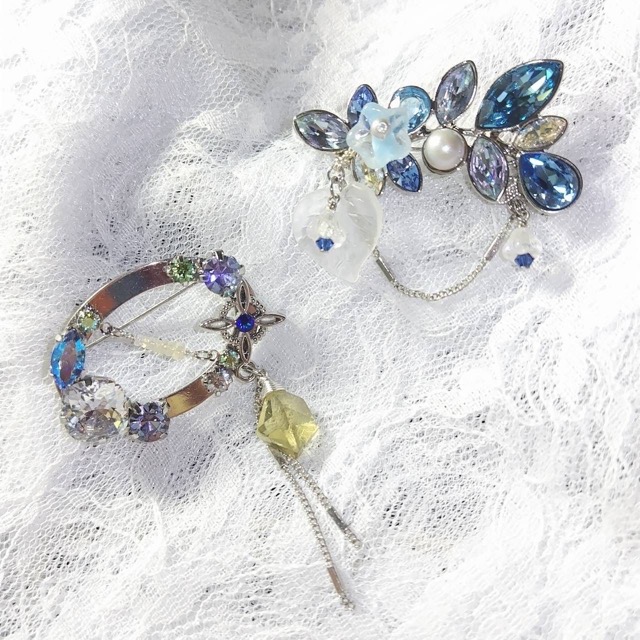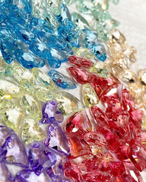 - ◆たろ:こんにちは!ガラスを手作業で砕いたり丸めたりしています。また、アクリルビーズを染色したりもしています!(どちらも商用可能) 完成品もございますので是非お立ち寄りください! ◆楓:私がイメージする「綺麗」を天然石を用いて表現しています。色々なコンセプトを元にした1点ものが中心です。シンプルながらも派手ではない、日常に色を添える作品を用意してお待ちしております!