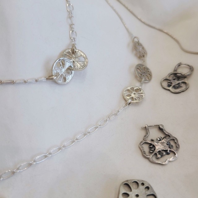 - 「一緒に時を刻みながら長く愛せる作品」をコンセプトとし、自然の中にある身近なモチーフと様々なチェーンを組み合わせ、作品作りをしております。 素材は主にシルバー925・950を使用し、白銀・いぶし・ツヤ消し・鏡面等、銀の様々な表情を知って頂けます。 アイテムはネックレス・ブレスレット・ピアス・イヤーカフ・リング等。 2021年に彫金師に出逢って弟子入り。技術を学び、2025年の2月より出店。