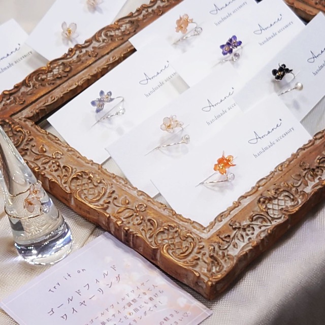 1本のワイヤーからリボンや花などのモチーフアクセサリーを仕立てています。