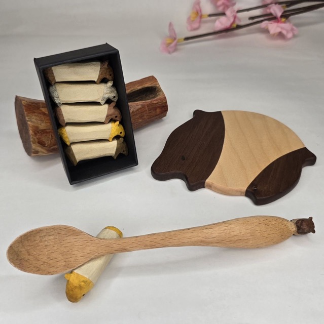 - どうもー!木を愛し木に愛された男、木好作家ぽむです!主にバクをモチーフにした木彫りの作品を制作しています!日本の庭木や果物の木、カラフルな世界の木を使ってかわいい木工作品を制作しています!作品は全ての無着色で自然の木の色をそのまま楽しめます!手に取った方が癒されるような作品と木の魅力をお届けします♪