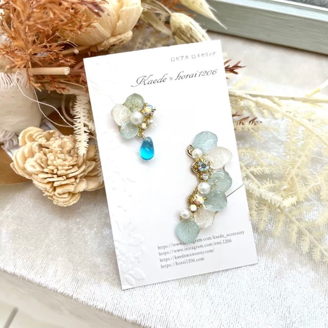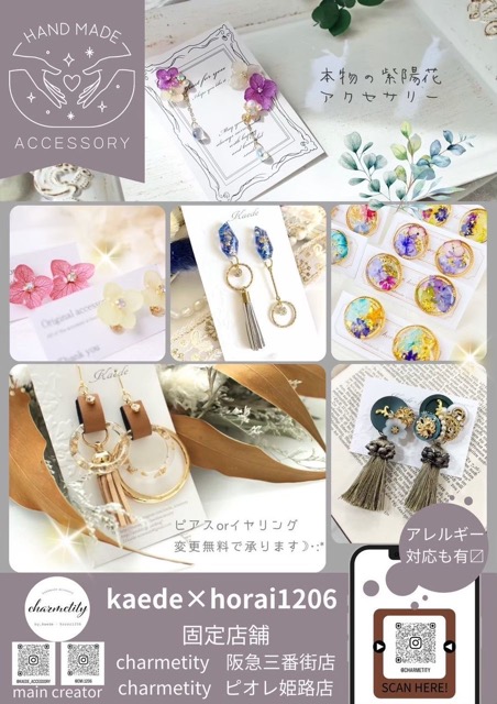 - 【日常を少しだけ特別に】をコンセプトに、一点物のハンドメイドアクセサリーをお届けします。 その場でピアス、イヤリング、金属アレルギー変更が無料で本物のお花とタッセルを専門にお客様一人一人の個性に合わせたアクセサリーを提案します。