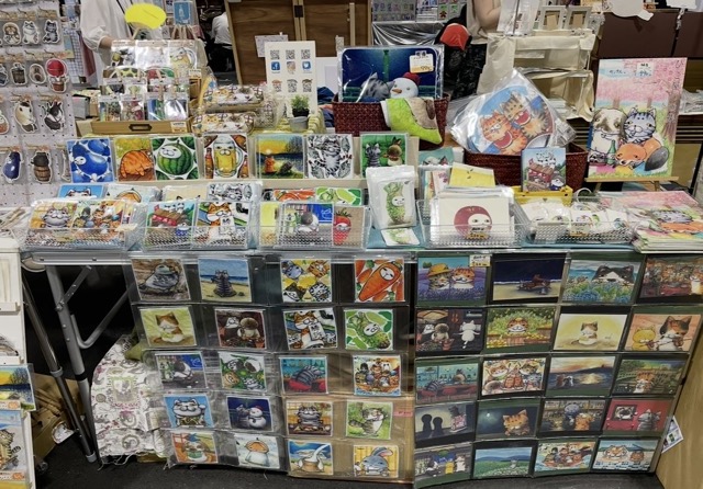 - 変な猫キャラクター雑貨屋「ひこ屋」です。猫以外にもウサギやハトもいます。冬のクリマに出展するのは数年ぶり!カレンダーやパーカーなど冬物多めの他、定番のポストカードやハンドタオルも山ほどご用意します。アナログで描いている原画も持っていくのでご来店されたらぜひご覧ください。