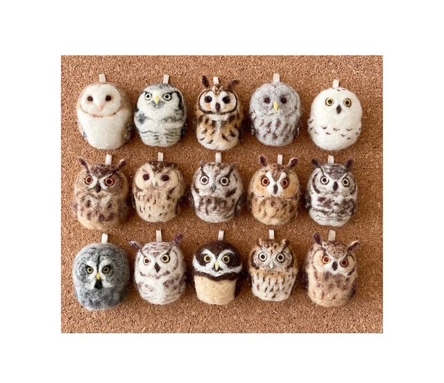 - 羊毛フェルトで動物のブローチやチャームを制作しています。 フクロウや鳥がメインになりますが、その時々でいろいろな動物を作っています。 リアル可愛いをコンセプトに飾っても楽しめるような動物のブローチや、小さくまんまるに仕上げた鳥達も、猛禽やレアな鳥などいろんな種類で制作しています。 どんな子達がいるのか是非覗いてみて下さい。