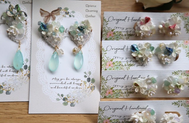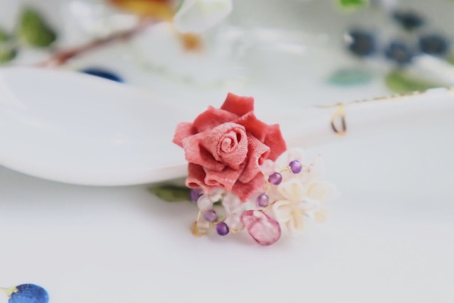 - 着物生地とリバティプリントを合わせた繊細なつまみ細工に、天然石のきらめきを添えて。和と洋が調和する鈴ノ屋のアクセサリーは、日常を彩り、貴方の毎日に明るさとときめきを届けます。