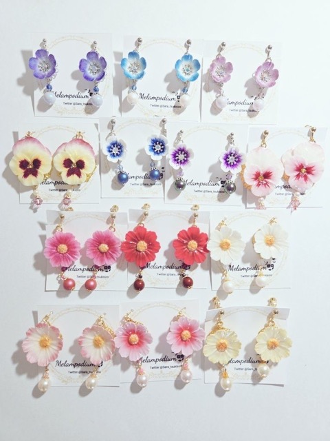 - Melampodium (メランポジウム)の「あなたは可愛い」という花言葉をコンセプトにアクセサリーを制作しております。 身につけて下さるすべての方に「可愛い」の魔法がかかりますように。 お花は樹脂粘土で1つ1つ手作業で制作しております。