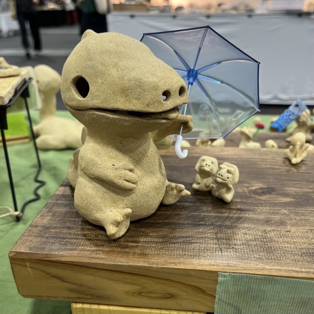 恐竜をモチーフにした手作りの焼き物を販売します。