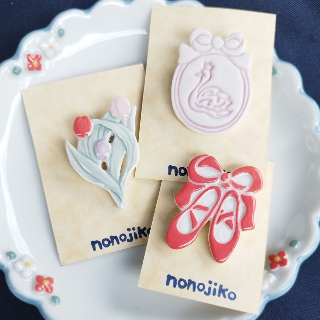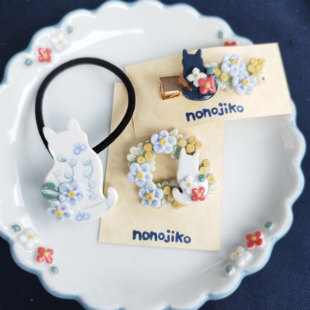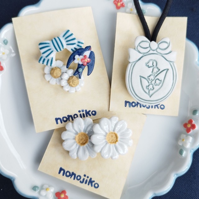 - 動植物モチーフの陶磁器アクセサリー ヘアゴムやブローチ、植物モチーフのアクセサリー 小さな器やオブジェもあります