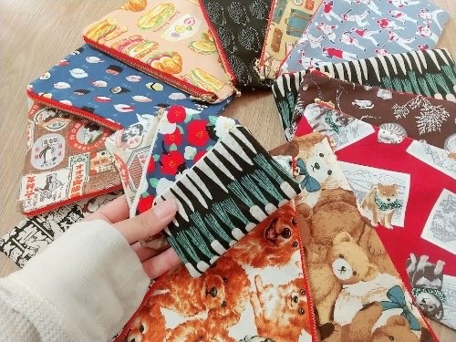 様々な柄で作ったポーチやバッグ、洋服など制作しています