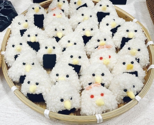- オリジナルキャラクター「ニギリオニ」と「ニギリトリ」たちのぬいぐるみを制作しています。ふわっとした手ざわりと、くすっと笑える表情を見に来て下さいね。名古屋初出店です!