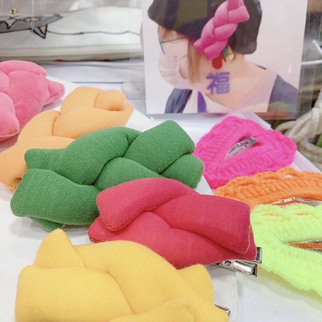 - カラフルなものやシンプルだけど個性的な編みぬいアクセサリーやヘアアクセサリー、プチバッグなどの小物たちを作っています daimyu定番のフープフリンジポーチはネオンカラーからベイシックカラーをご用意します でっかい三つ編みの『でかみつ』ヘアクリップは、ヘアアレンジにはもちろん、ニット帽やバッグにプラスしてのファッションアイテムとしても楽しんでいただけます
