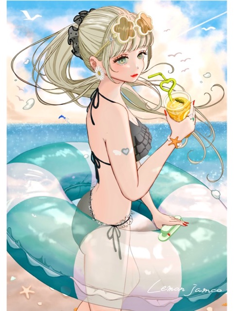 - レモンジャム子は デジタルイラストとアナログイラストの2パターンのイラストを描いています。 ポストカードやステッカー、アナログ原画など販売するので それぞれの味をお楽しみいただけたらとおもいます。