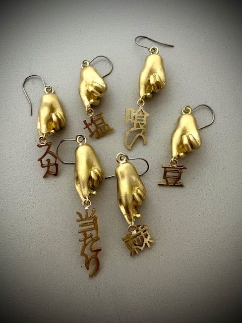 文字をモチーフにした真鍮アクセサリー、雑貨