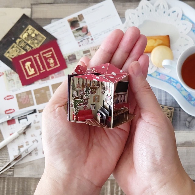 - 360度くるっと開くとドールハウスになる手のひらサイズの絵本を制作しています。その他、小さな紙ものやスタンプを制作しています。