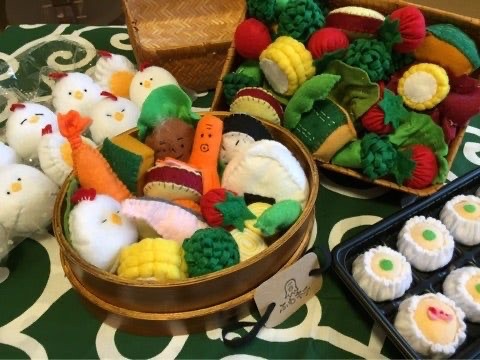 - フェルトのおにぎりやおかずの中から、すきなものを選んで自分だけのお弁当が作れます。動物のマフラーやバッグ、巾着などの布小物もたくさんあるので、お気に入りの一品探しに見に来てもらえたら嬉しいです。