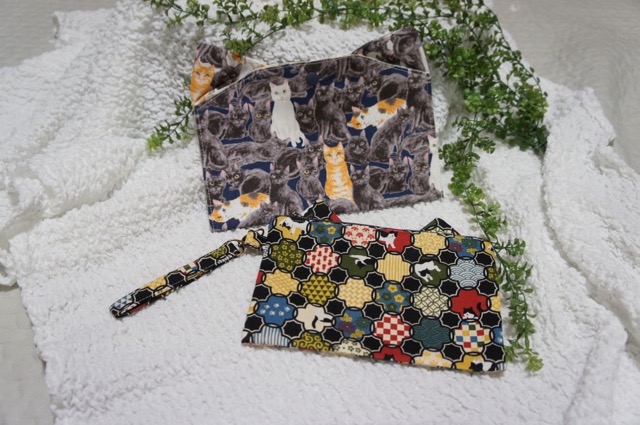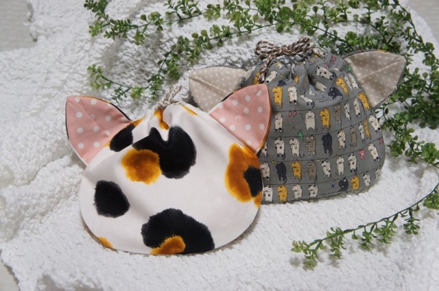 猫モチーフのポーチ、巾着、バッグなどの布小物