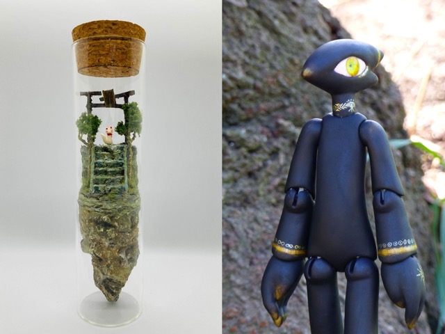 - ブロカントは作家二人の合同サークルです。 作家名:目細(めそ) 人々から忘れ去られた世界を小さな箱庭として、土地神であるお狐様と共に再びこの世に呼び出しています。ノスタルジックで和風なジオラマをメインに作っています。 作家名:一来 螺子丸(いちき らじまる) 星屑の子「Debris」シリーズ創作人形や、鳴く置物「とり」など、欠片をテーマとした物語を中心に立体物を制作しています。