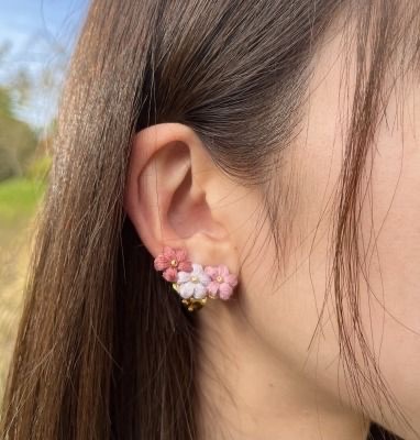 - 主にお花をモチーフにした作品を作っています。お花は1つずつ手編みで作成しています。 くるみボタンに刺繍をしたアクセサリーやお花がたくさん施されたアクセサリーやヘアアクセサリー等、お花や刺繍がお好きな方ぜひ立ち寄ってみてください。