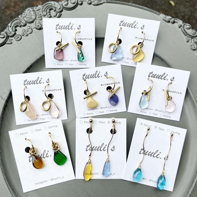 - 【あなたの生活に寄り添うアイテム作り】を目標に、艶々におめかししたシーグラスやカラフルなビーズを使用したアクセサリーを制作しています。お好きなシーグラスとデザインを選んでいただき、店主がお仕上げさせていただくオリジナルのアクセサリーも制作可能です。金属アレルギーをお持ちのお客様にも身につけていただけるように、サージカルステンレスやニッケルフリーの金具アイテムもご用意してお待ちしております。