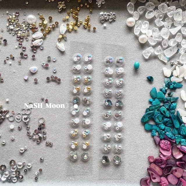 - 初めまして!NaSH_Moon・(ナッシュムーン)です! 月や太陽モチーフ多めのアレルギー対応素材のアクセサリーを製作しております。 シェル、パール、天然石を多く使っております。 耳つぼジュエリーシートではサロンをしている方や セルフで耳つぼジュエリーをしたい方向けにオリジナル耳つぼジュエリーシートを製作しております。 是非手にとって見て頂きたいです。