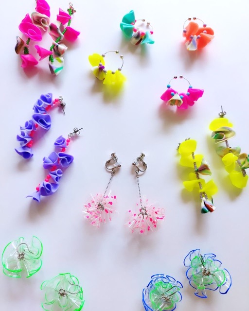 - プラスチックを主に使用しています。一つずつ色づけし形成しているので、同じものが作れない唯一無二のアクセサリーです。身に付けていただくと楽しく元気になり、そして何より私が作っていてワクワクするものを作っています。皆さまも手にとって身につけてワクワクを実感頂ければ幸いです!