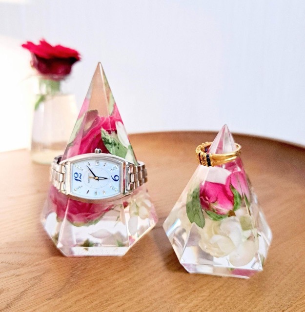 - 生花みたいなドライフラワーをレジンで保存加工した、心があたたかくなって笑顔こぼれる作品を作っています。日常使いしやすいペーパーウェイトからプレゼントにぴったりのお花そのものをレジンにおさめた作品など、どれも人気です。透明感とドライフラワーに見えないお花にびっくりされる方もたくさん!ハナニコリでは、思い出のお花を残すオーダーメイドも受け付けています。どうぞお気軽に声をかけてください!