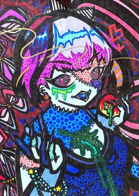 - 「躁鬱狂気のゆめのなか」をテーマに、カラフルでドロドロとした世界観を好み描くイラスト作家。コーヒーとチョコミントとホラー映画が好き。イラスト集やステッカーなどのグッズ、イラスト原画を販売します。