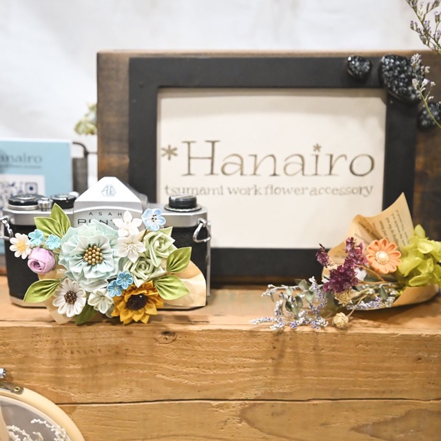 - 『普段使いできるつまみ細工』をコンセプトに気軽に身につけられるアクセサリーやお部屋に飾れる雑貨など、伝統工芸でもあるつまみ細工を色や形、素材にこだわりながら自由にアレンジしたお花の作品を制作しています。