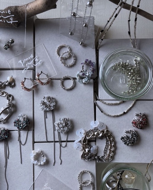 - 今の気分を映すヴィンテージと現代と自作ピースのミックスを楽しむアクセサリー。 自由で繊細な手仕事と即興的デザインを掛け合わせて、抜け感のあるプレイフルなアイテムを展開します。