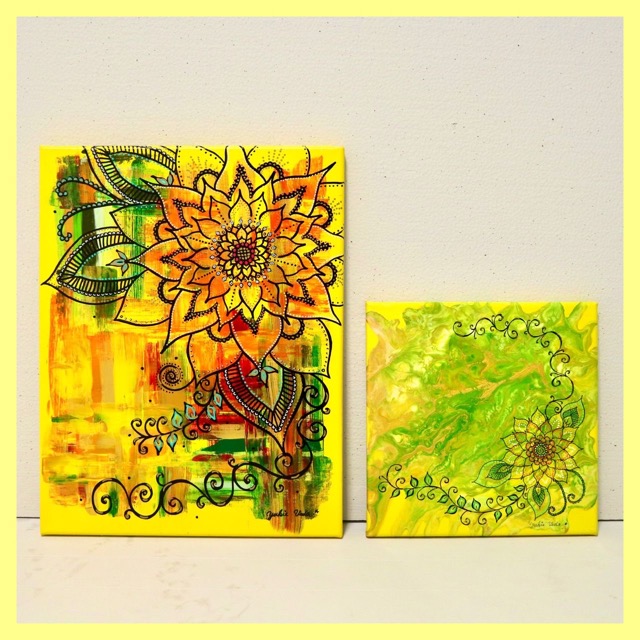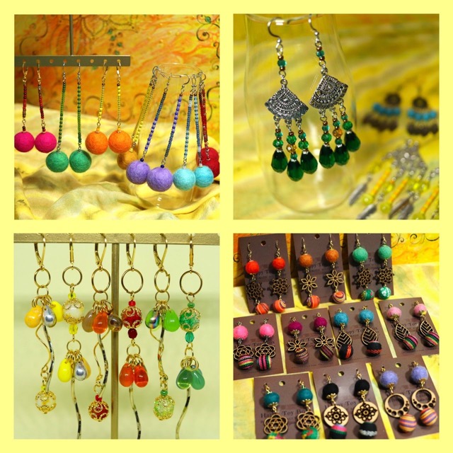 「アレルギーのある人にも自由な選択を」という思いでイヤリングやピアスにはサージカルステンレスを使用して制作、さらに独自の感性で明るく華やかな絵画を描く