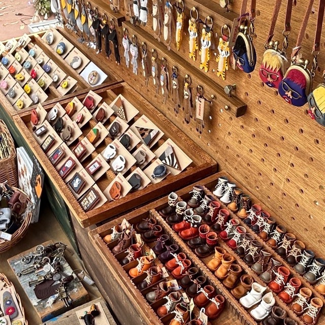 革を使って動物のキーホルダーやブローチ、がま口など笑顔になる革小物を作ってます