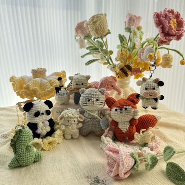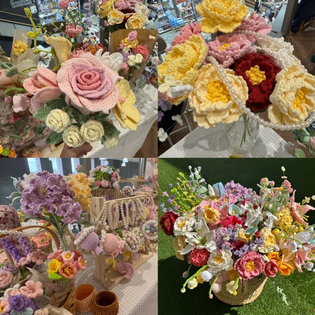- お花や編みぐるみ,アクセサリー小物など,様々な作品を編んでいます。一つ一つ心を込めて編んだ作品を通してお客様に笑顔とパワーをお届けできたらと思います。 おしゃれを楽しむアイテムを揃えてお待ちしています。