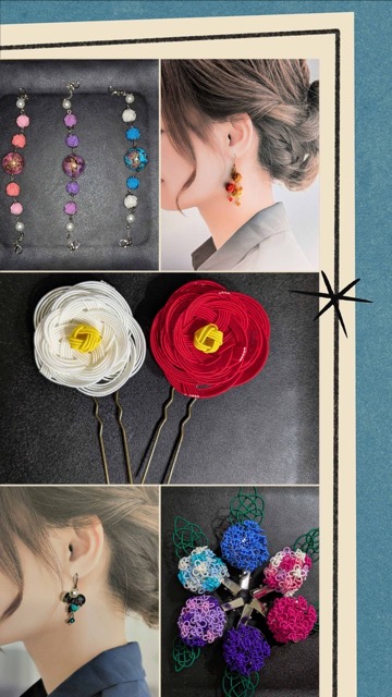 - 水引を使ったアクセサリー類や着物帯リメイクや雑貨などを販売します