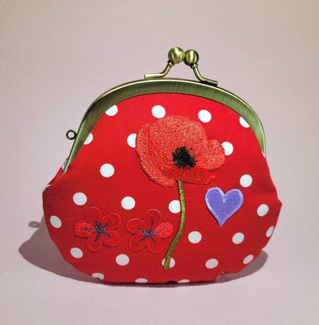 ファッションから抜け出してきたような、カラフルで個性的、使うと楽しくなるオリジナルがま口です。