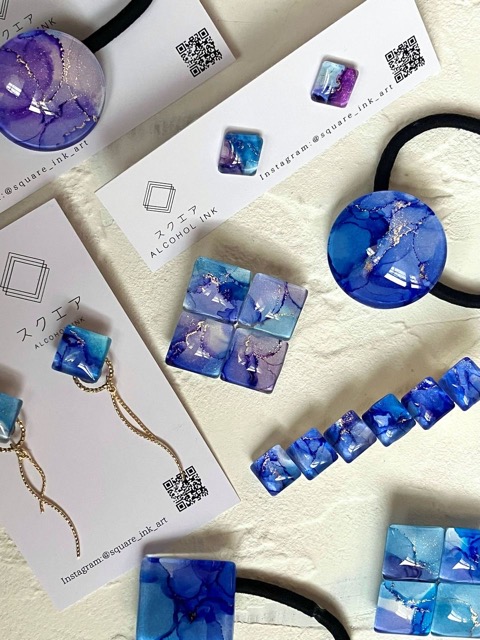 - インクの滲みやグラデーションが魅力のアルコールインクアートで作るアクセサリー・雑貨です。すぐに飾れるフレーム入りアートも販売します。鮮やかな色からシックな色まで多彩な作品をお届けします。毎日に小さなアートを。
