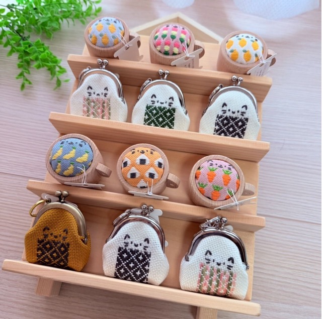 - 東北由来のこぎん刺し刺繍をちょっとポップに可愛くを大切に♪日常使いやすい小物を作っていますこぎん刺しの「こぎにゃん」猫のがま口や、インテリアにもぴったりの針山、日常使いやすいヘアゴム・ブローチなどをご用意しています