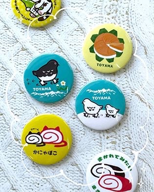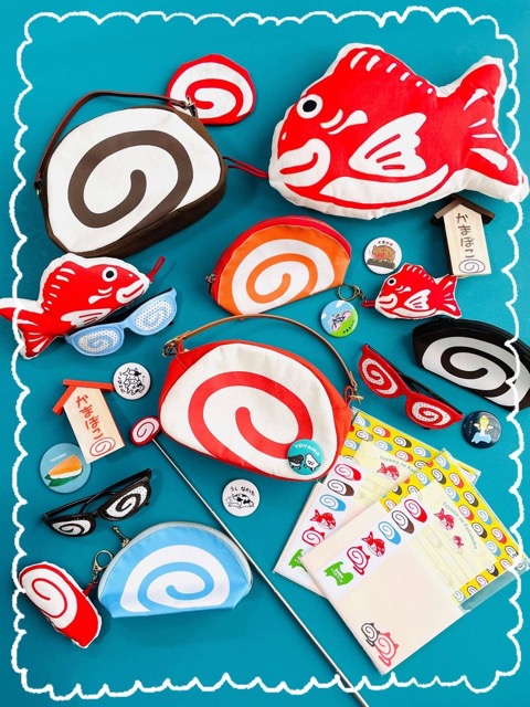 - 富山を代表する 赤巻きかまぼこ・雷鳥・鱒の寿司・ホタルイカ等をおもしろグッズにいたしました。特に赤巻きかまぼこのポーチが一番の目玉です。「なんでこれをグッズにしたの」とブース前でクスッと笑っていただけるようなラインナップを是非見に来てください。