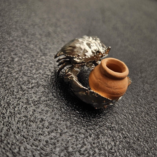 イワシのスプーン、金属のカニ