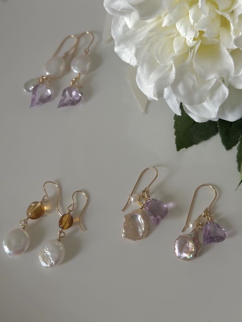天然石、淡水パールを使用したハンドメイドジュエリー